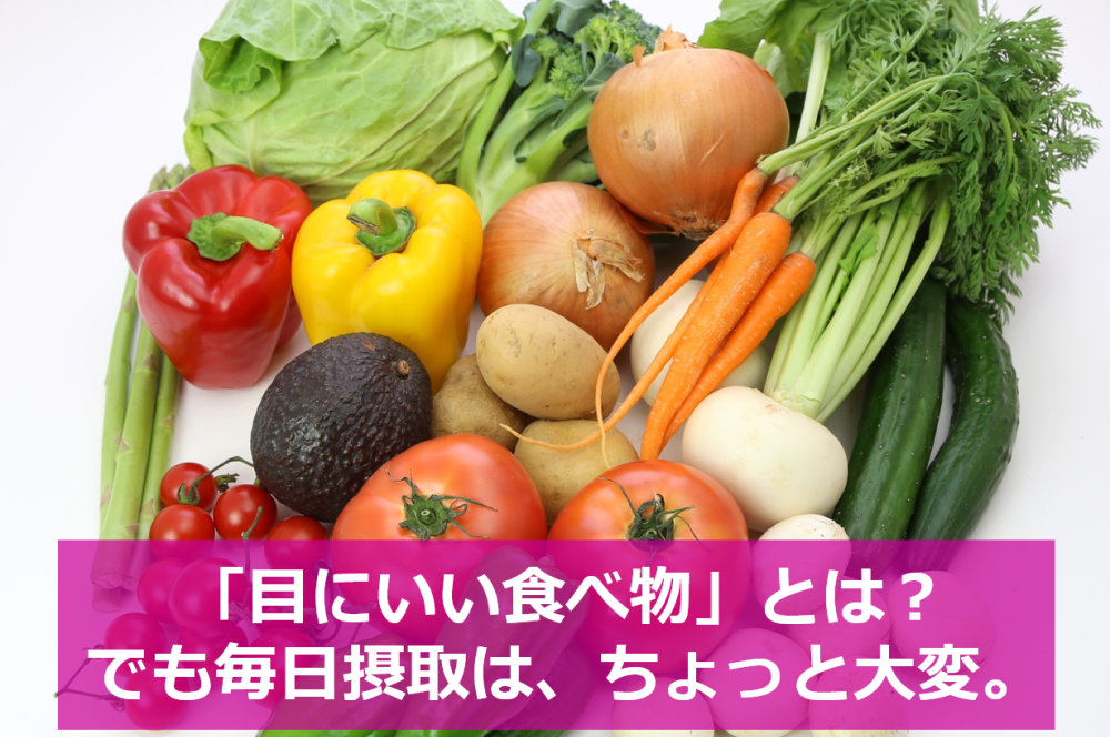 ただし、食材から目にいい栄養を摂るのは大変なので、サプリから摂るのが一般的です。